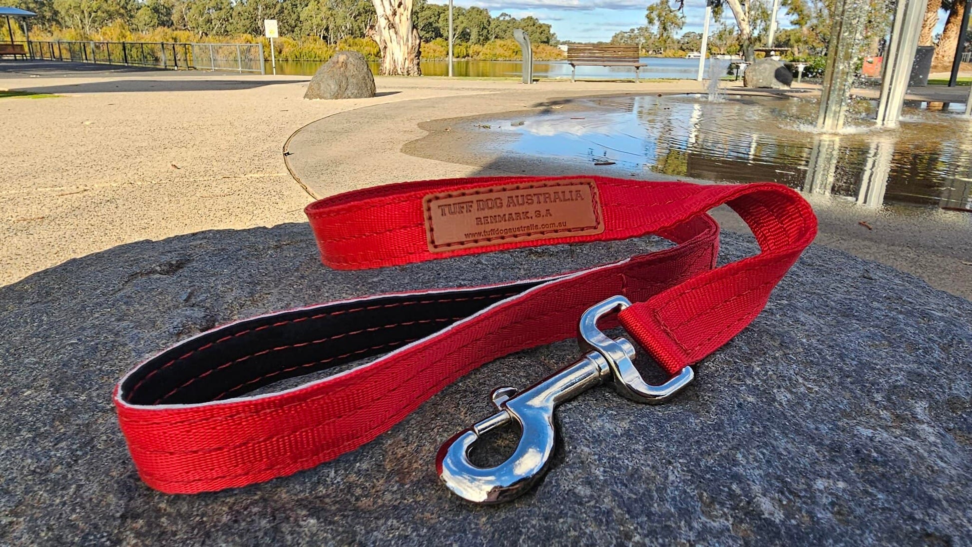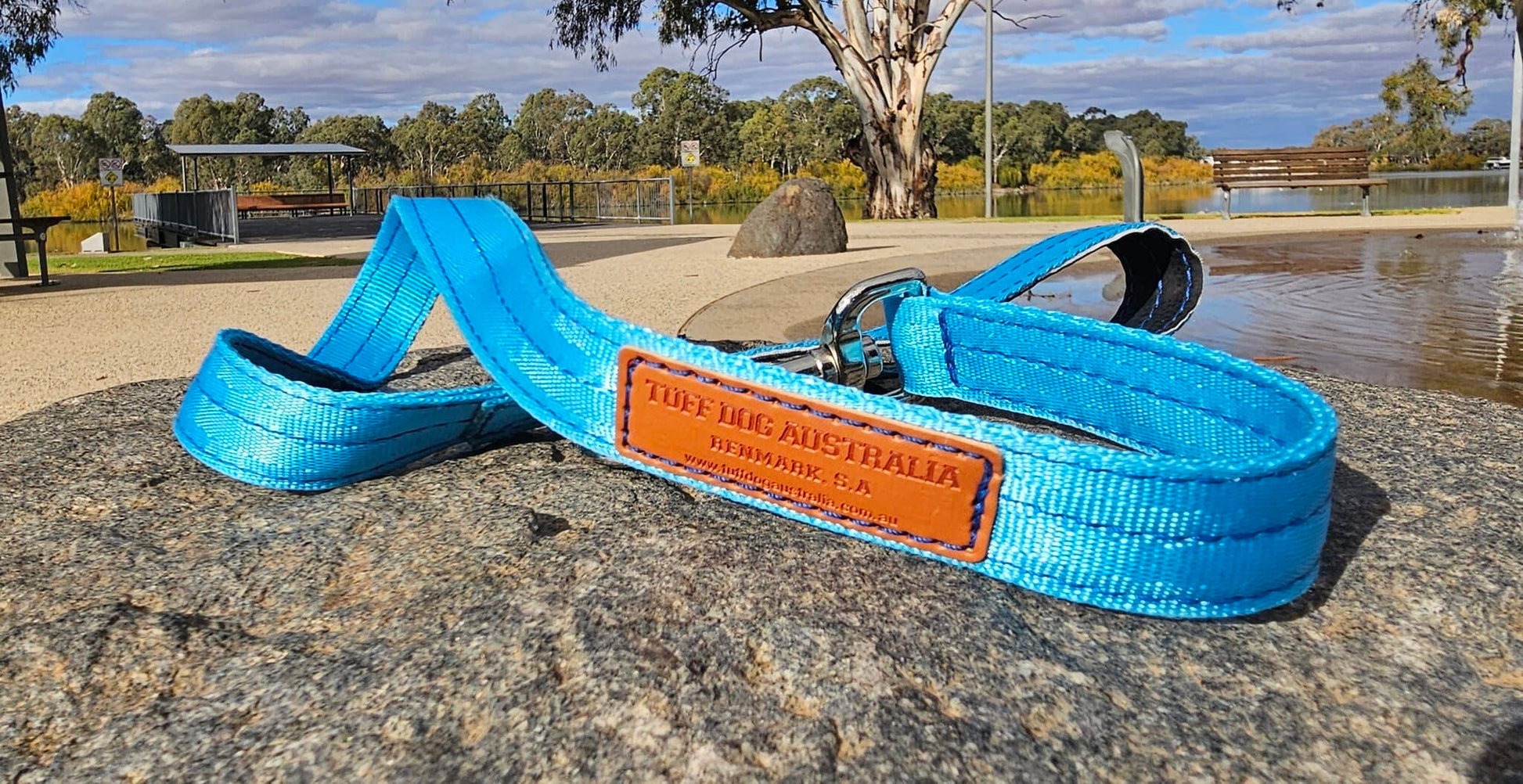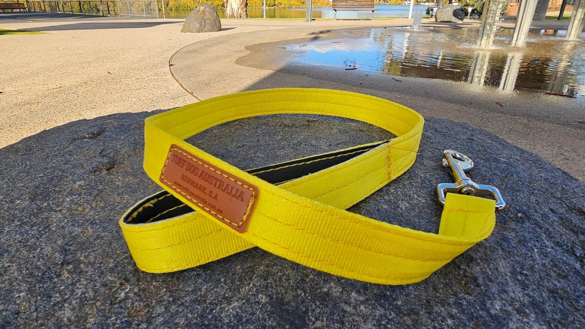 Our Tuff Dog leads are made from the same durable seat belt webbing we use for our collars without the polypropylene webbing in the middle layer, which allows it to be more flexible and ideally suited to a lead.
